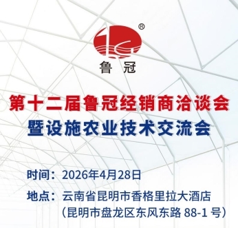 2026年4月28日,鲁冠塑料将在云南省昆明市隆重召开“第十二届鲁冠经销商洽谈会暨设施农业技术交流会”。其中,设施农业技术交流会环节,特邀北京大学、中国农业大学、山东农业大学、华南农业大学等高校教授,以及巴斯夫、意大利邦德拉等知名企业技术专家,围绕设施农业核心技术、功能农膜应用、作物提质增产等关键话题,结合实战案例带来深度分享和解析。
